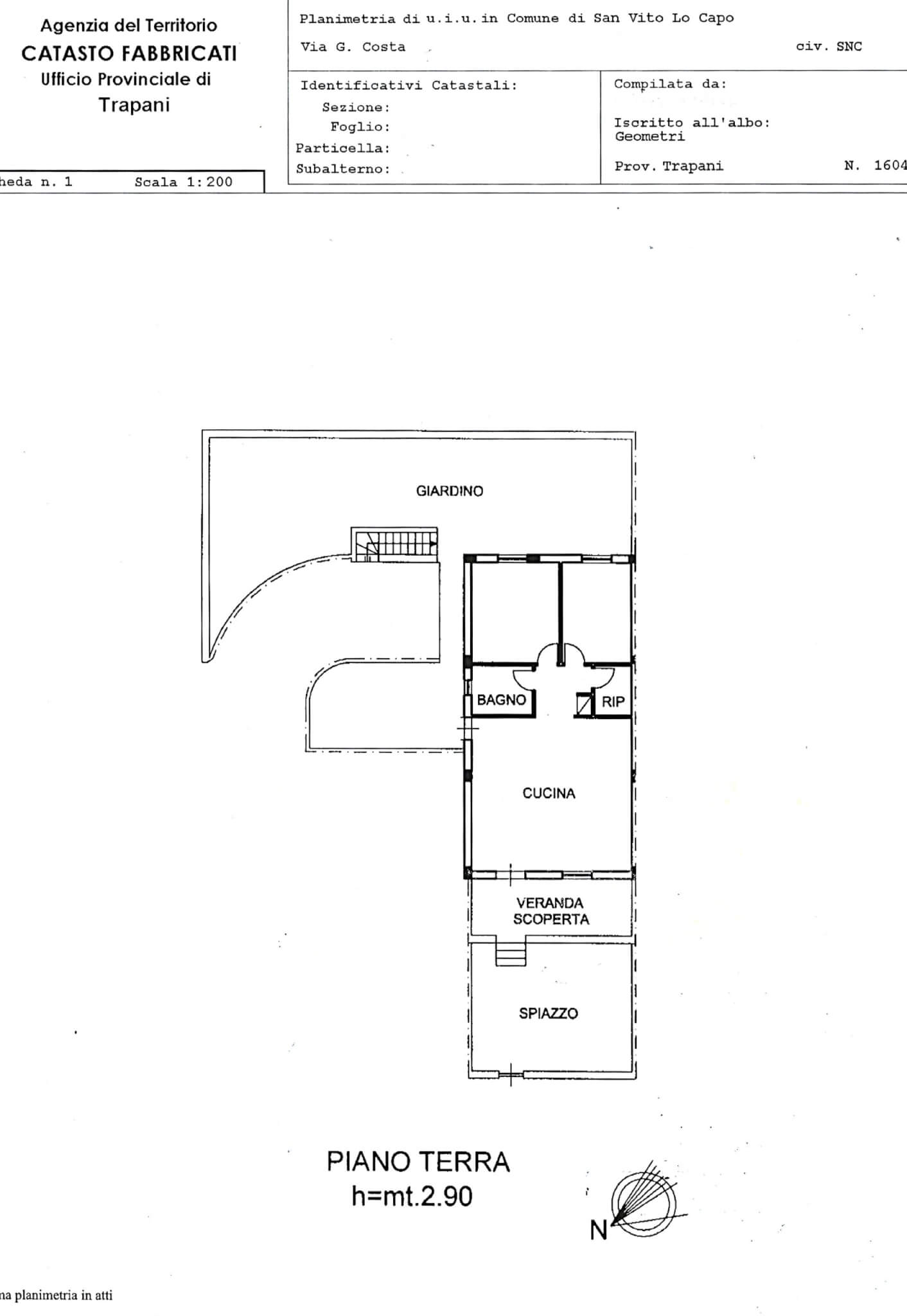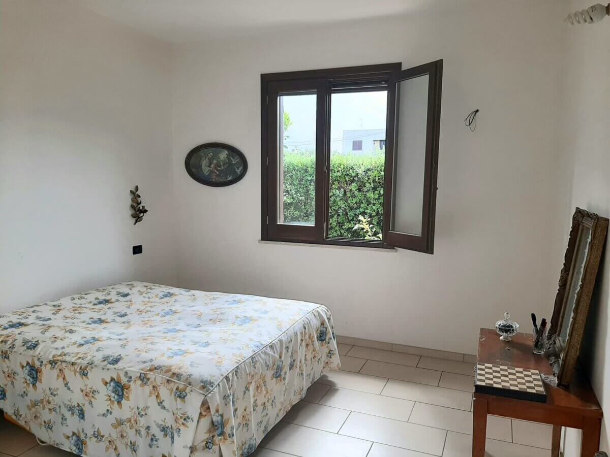 Si compone di soggiorno con cucina a vista, bagno, ripostiglio, disimpegno, due camere, giardino di ingresso con veranda scoperta ed ampio giardino sul retro.